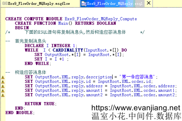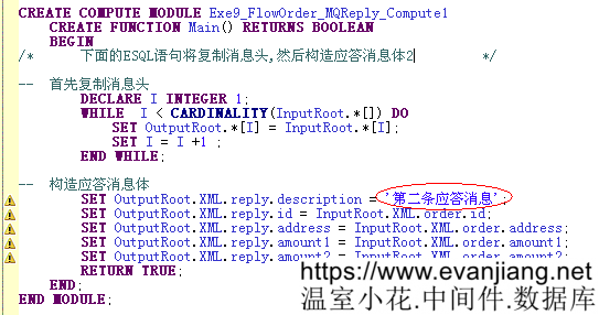 在構造應答消息2節點中輸入以下ESQL: