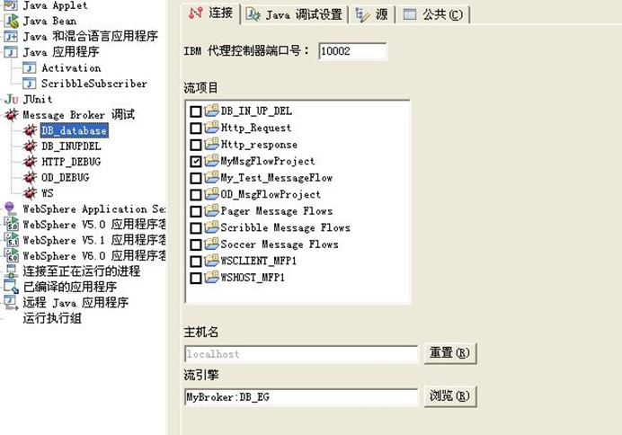 在WMB中要调试需要安装RAC,为需要调试的项目新建调试