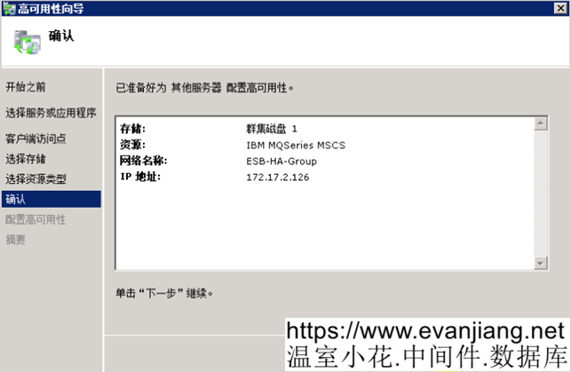 在”配置高可用性”页,程序进行高可用性配置,