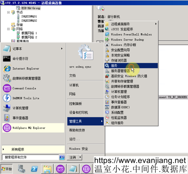 登錄到125上面,添加實例的引用。在”故障轉移群集管理器”界面先使ESB-HA-Group脫機,如下圖所示,