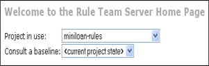 在 Rule Team Server 主頁選項卡中,在”正在使用的項目”字段選擇”迷你貸款-規則”。
