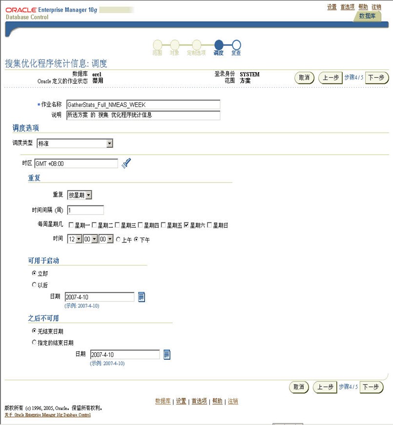 配置周统计信息收集任务执行的调度时间(下图中配置的为每周星期六晚上12点自动执行统计信息搜集)