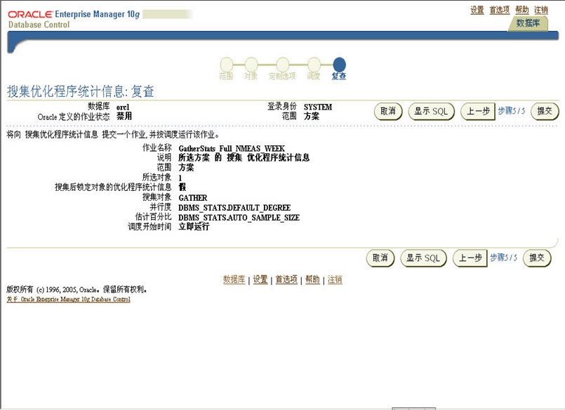 提交完成周统计信息收集任务配置