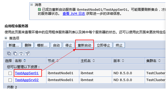 4、在was控制台上停掉自己的应用程序服务器,然后重启。如下图所示: