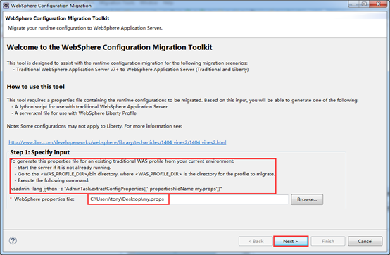 ./wsadmin.sh -lang jython -c “AdminTask.extractConfigProperties([‘-propertiesFileName my.props’])”