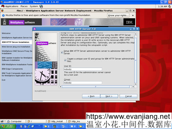 程序安装包在/http_install目录下,解压解包后,执行http_ins/ihs/目录下的install.sh文件,用xmanager来执行该文件进行安装。