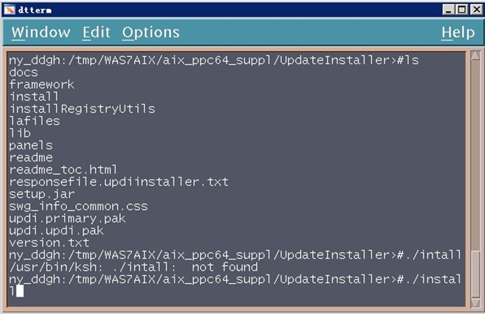 1.进入目录/tmp/WAS7LINUX/Linux_suppl/ UpdateInstaller(根据实际路径调整),执行install命令,如下图所示: