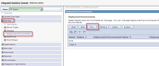 登錄管理控制台,進入」Servers」-「Deployment Environment」操作頁面,點擊New…按鈕,創建一個新的拓撲實例。