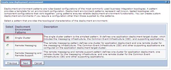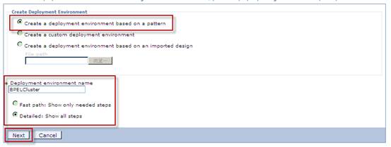 選擇部署環境的建立方式,填寫部署環境名稱 (例如,BPELCluster),點擊下一步。