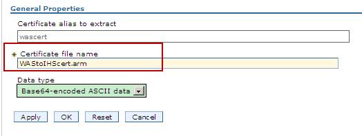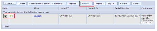 選擇剛才建立的自簽署證書wascert,點擊抽取,生成公用自簽署證書