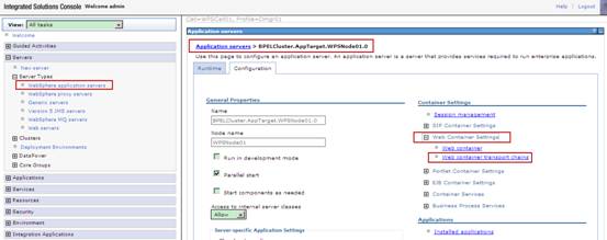 进入“WebSphere Application Server”-“BPELCluster.AppTarget.WPSNode01.0”-“Web Container Settings”-“Web container transport chains”