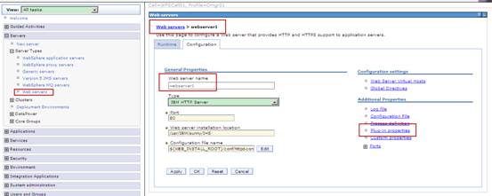 进入“Web Servers”-“webserver1”-“Additional Properties”-“Plug-in properties”