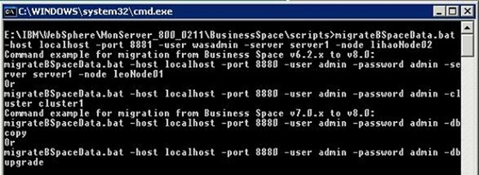 首先,先簡要介紹一下 Business Space V6.x 到 V7.5 數據遷移命令: migrateBSpaceData.bat/sh: