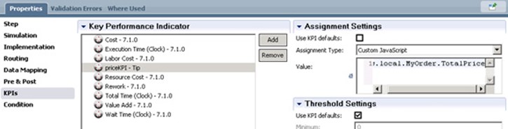     在 Process Designer 中,單擊 Performance => Key Performance Indicator,並指定一個 KPI 名稱,如 priceKPI,然後單擊 Finish