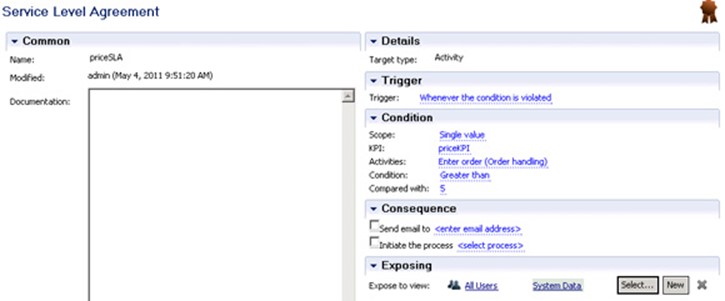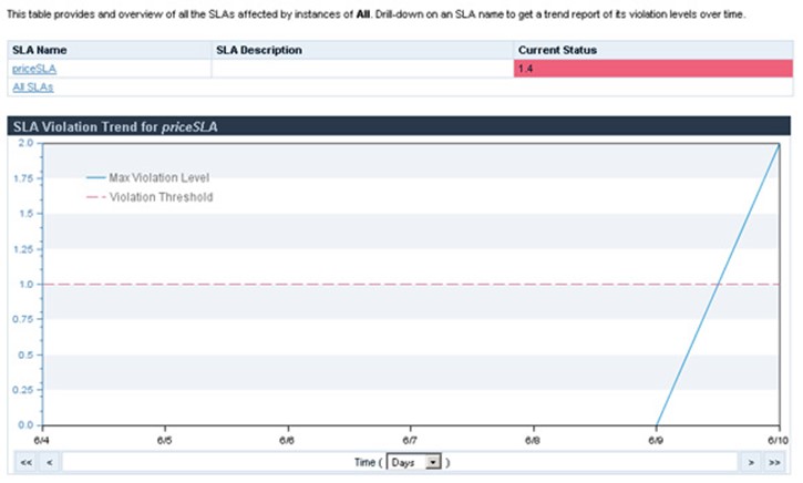     如果 TotalPrice 大於 5,那麼創建一個 SLA 來觸發違規: