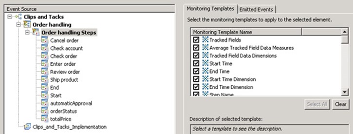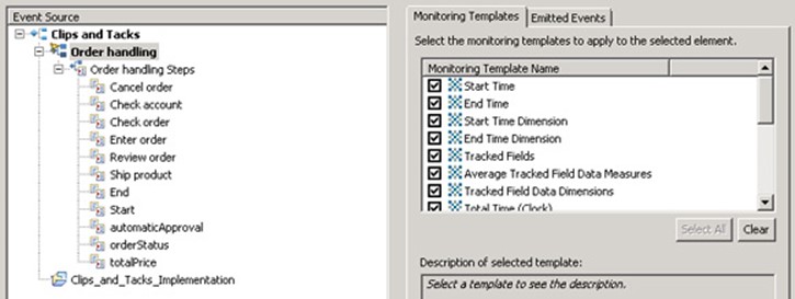 列出的監視器模型帶有監視上下文。選擇 Order handling,在 Monitoring Templates 選項卡中,選擇希望生成的監視元素,如圖 37 所示。