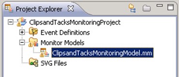 要啟動監視器模型生成嚮導,在 Business Integration 視圖中右鍵單擊 Clips and Tacks 項目並選擇 Generate Monitor Model。