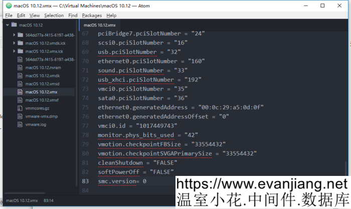 先到虛擬機根目錄修改VMX文件,用記事本、Atom之類的文本編輯器打開